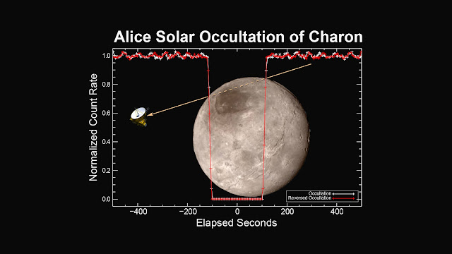 Слайд 4. Пошук ознак атмосфери навколо найбільшого супутника Плутона - Харона. Прилад "Alice" спостерігав як Харон 14 липня проходить перед сонцем (затемнення). Поки що лише частина даних була передана на Землю і по них атмосфера не була виявлена.